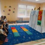 В СП «Детский сад №56» ГБОУ СОШ №4 г.о. Сызрань воспитатель Парамонова Е. В. провела с подгруппой детей старшего дошкольного возраста игру «Светофор» по закреплению и знанию цветов и правил перехода дороги по сигналам светофора.